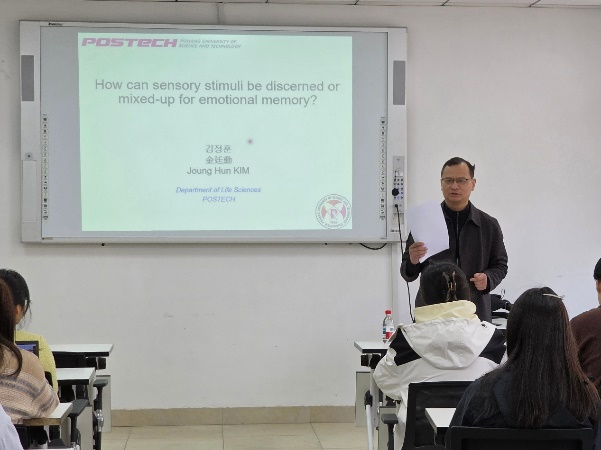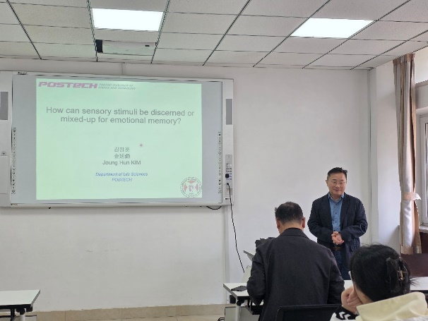 为深化国际学术交流与合作,促进跨学科交叉融合,助力高层次人才培养与学科建设,心理与脑科学研究院于2026年4月22日邀请韩国浦项科技大学生命科学学院金廷勋(Joung-Hun KIM)教授举办题为《How can sensory stimuli be discerned or mixed-up for emotional memory?》的学术讲座。本次讲座由科研处崔然吉处长主持,研究院师生到场聆听学习。